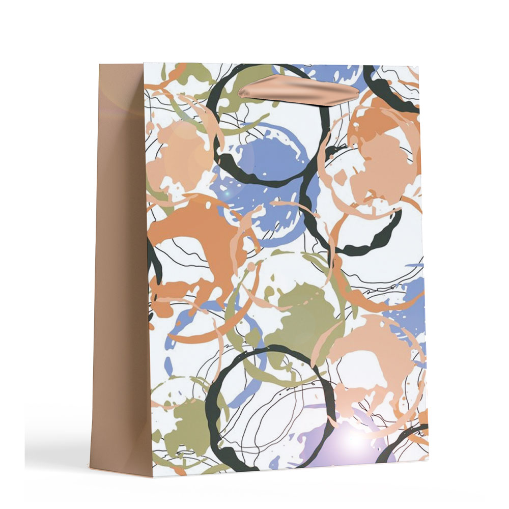 Multi-colored bags suitable for use as gifts. All paper bags feature recyclable materials made of high-quality material.