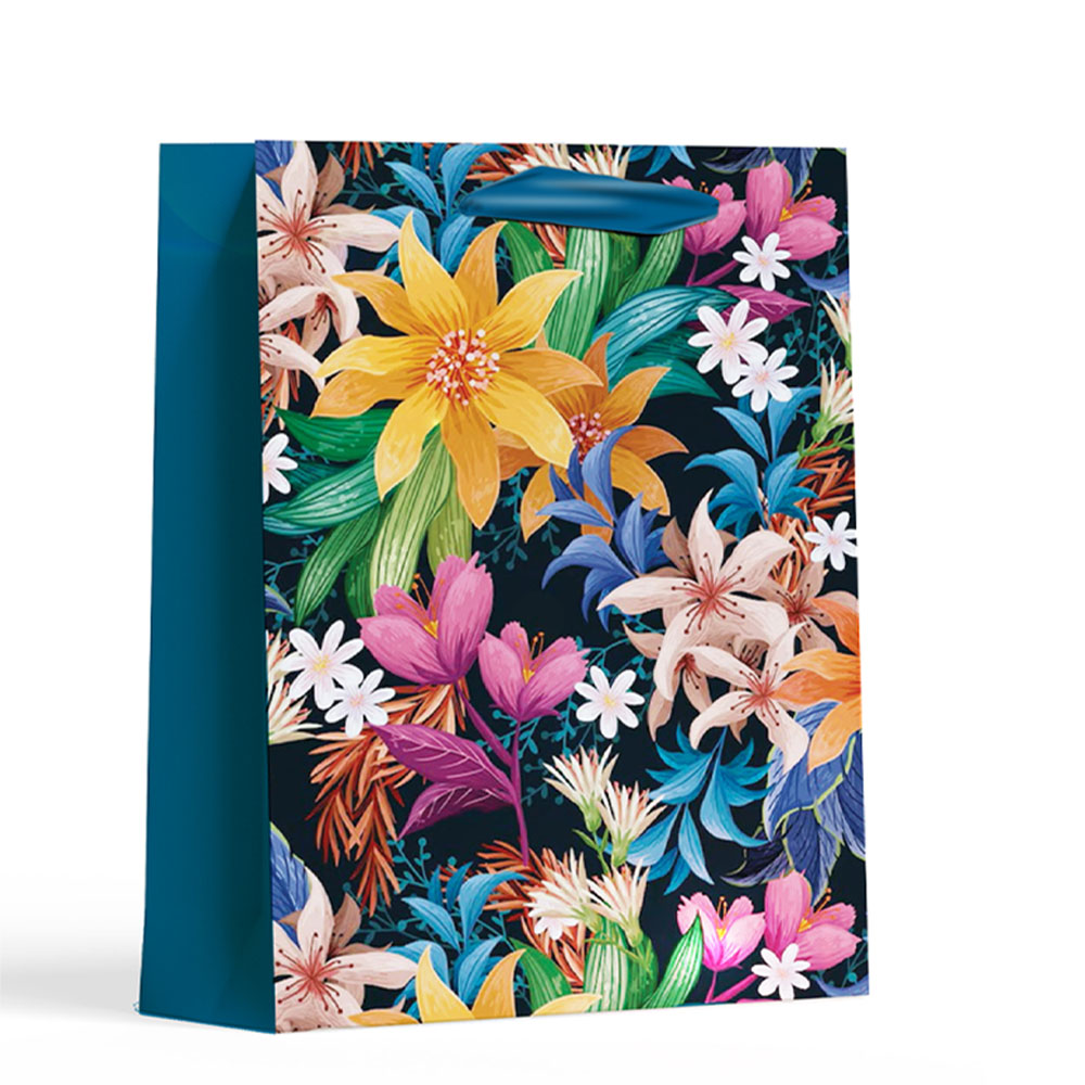 Multi-colored bags suitable for use as gifts. All paper bags feature recyclable materials made of high-quality material.